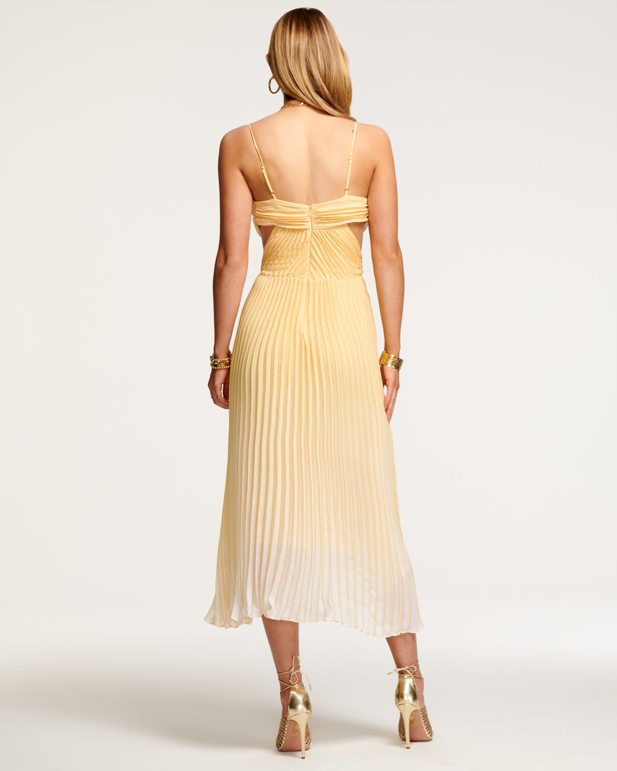 Online Exclusive: The Beckett Dress will have you saying ‘pleats, please!’ with its classic silhouette that encourages wistful movement. Plunging neckline and side cutouts add a touch of sexy to this mid-length number.