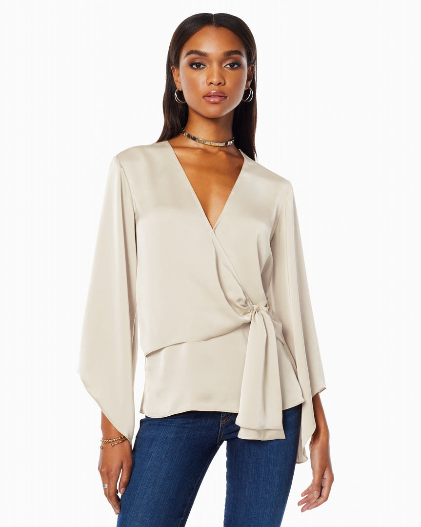 Online Exclusive: Drape yourself in our sophisticated Cassandra Blouse, a long-sleeve style with deep V neckline. Wrapped waist ties with a dramatic detail and diagonally cut sleeves offer elevated movement that’s nothing short of classic.