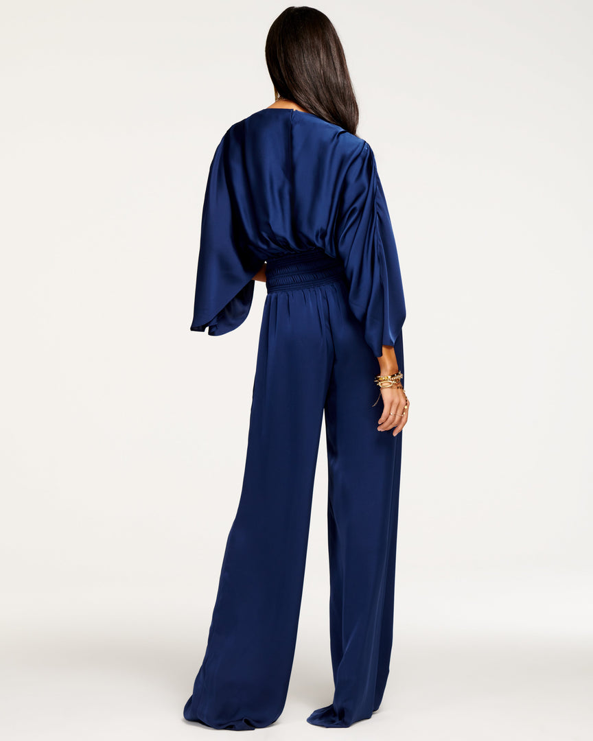 It’s never been easier to channel your inner goddess than with the Cheri Jumpsuit, a satin charmeuse beauty that is as classic as it’s modern. The bell sleeves, contrasted against the cinched waist, cut a stunning figure. Make the look your own by pairing with your favorite stack of necklaces, perfectly on display with the deep v neckline.