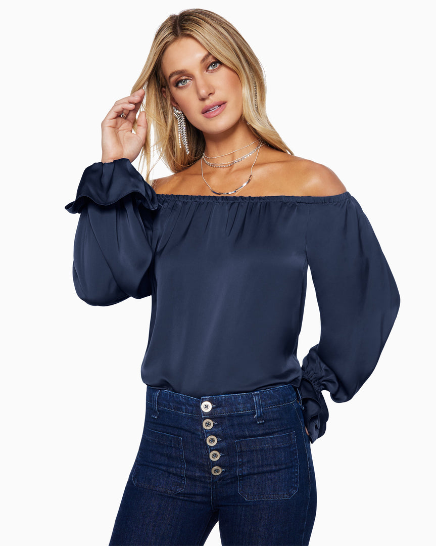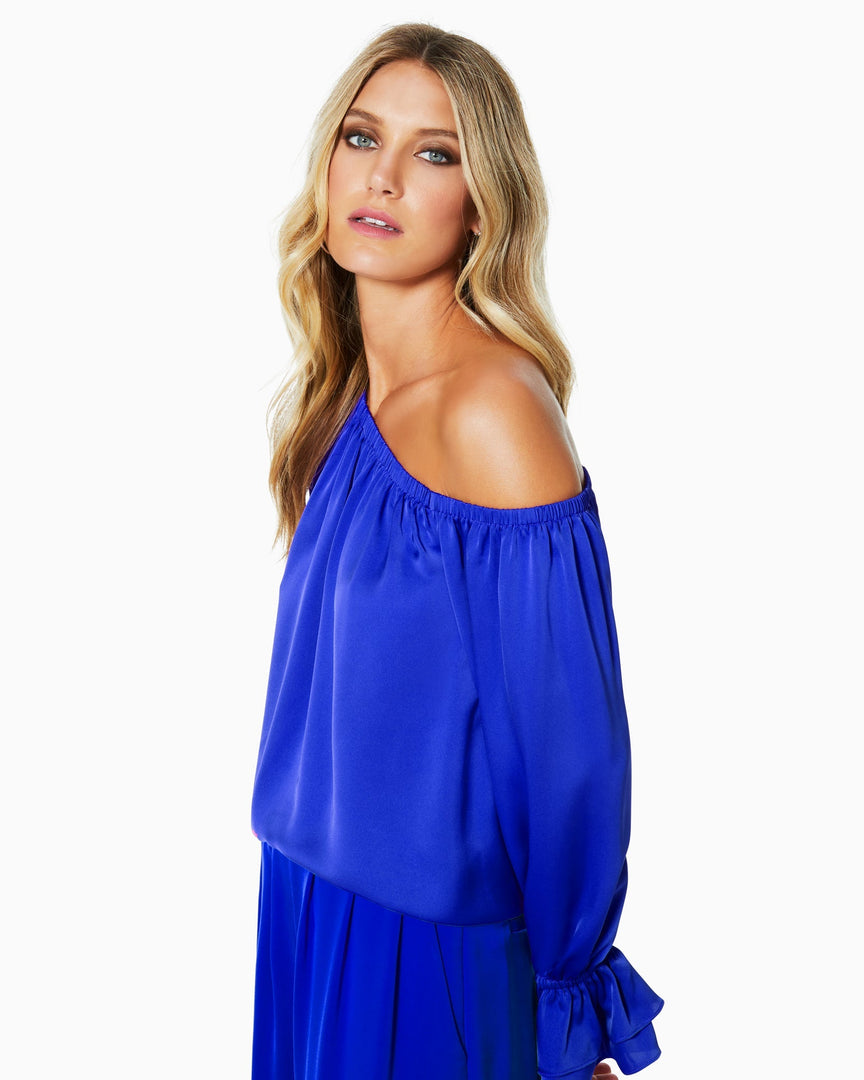 Online Exclusive: Meet The Murphy Top – our most flattering one-shoulder sillouette is back to give you laid-back luxury just in time for the warmer weather. The lightweight longsleeves feature double flounce detail for an added touch of elegance. Dress it down with our denim or pair it up with our Satin Iris Pant for a monochromatic look.