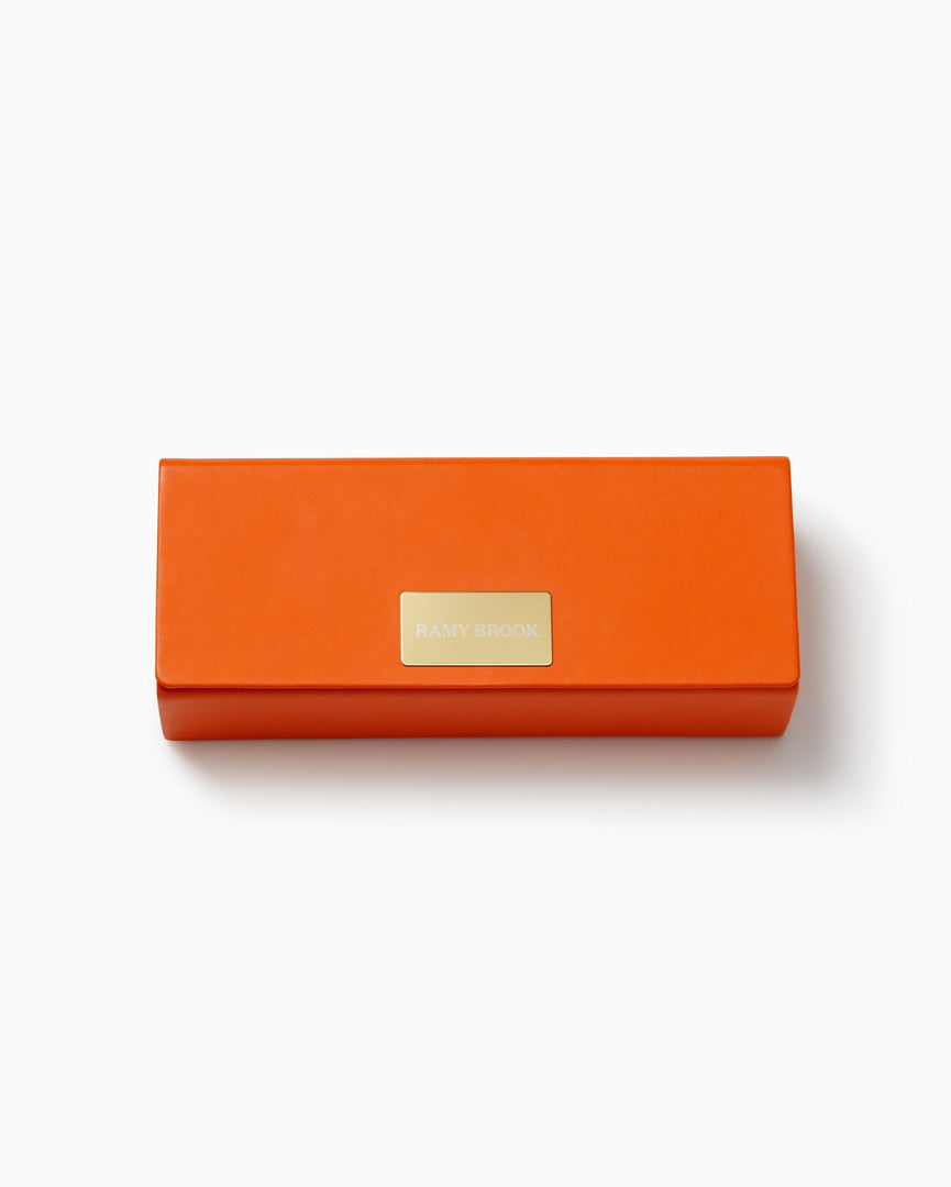 – Your sunglasses will arrive in a beautiful orange hard case with a branded gold metal plaque. Each pair comes with a matching orange microfiber pouch.