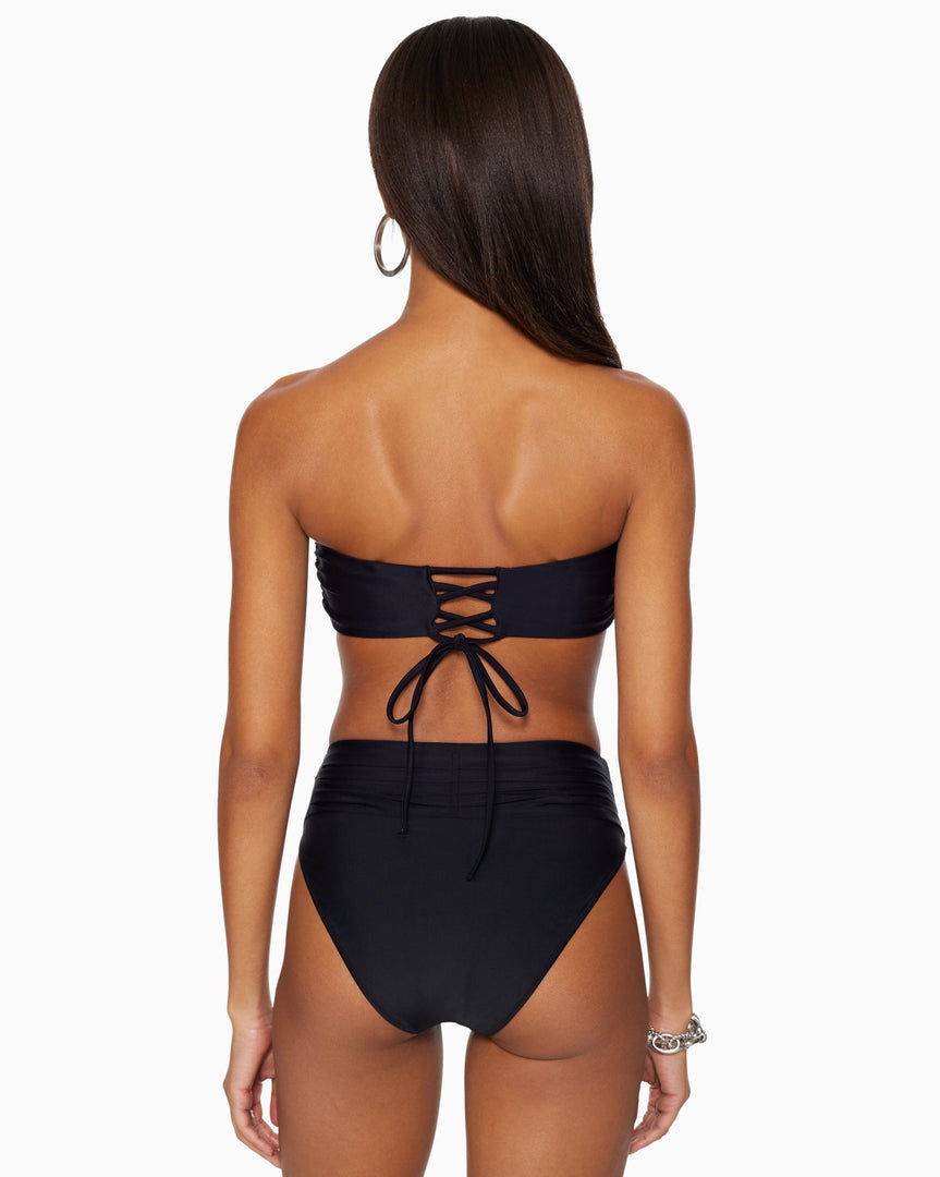 The Venice Bikini Top is a classic bandeau silhouette with a unique lace up, corset detailing in the back, so you can always ensure a perfect fit. This iconic top allows you to get the perfect tan, while still having full coverage. Pair with your favorite Ramy Brook bikini bottom to create the perfect set.